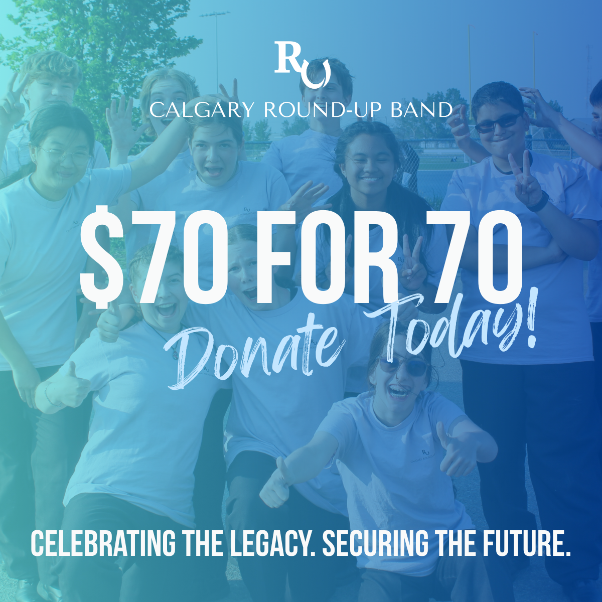 For seven decades, the Calgary Round-Up Band has been more than music — it’s been a community that builds confidence, leadership, and lifelong friendships. Now, as we honour 70 years of impact, we invite you to give back to the band that has given so much.